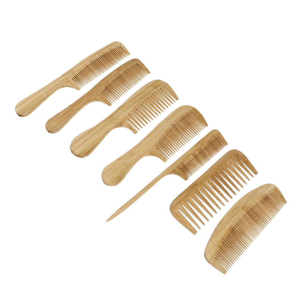 7Pcs Bamboo Hair Brush Curly Wooden Hairdressing Comb Miss Man Wide Tooth